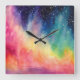 Night Sky Rainbow Watercolour Abstract Art Square Wall Clock