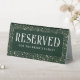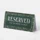 Elegant emerald green and gold celestial wedding tabletop sign "Reserved"
