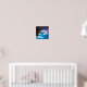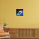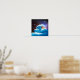 Night Sky with Giant Asian Wave Drawing Blue Poster