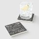 The coasters are gorgeous, a quality feel and heavy weight. They look like a precious archeological find. A rustic stone juxtaposed with a modern floral black and white print. I like the way the print goes slightly imperfect on the cut stone edges giving them a kind-of natural beauty.