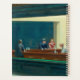 Edward Hopper said that Nighthawks was inspired by “a restaurant on New York’s Greenwich Avenue where two streets meet,” but the image—with its carefully constructed composition and lack of narrative—has a timeless, universal quality that transcends its particular locale. One of the best-known images of twentieth-century art, the painting depicts an all-night diner in which three customers, all lost in their own thoughts, have congregated. Hopper’s understanding of the expressive possibilities of light playing on simplified shapes gives the painting its beauty. Fluorescent lights had just come into use in the early 1940s, and the all-night diner emits an eerie glow, like a beacon on the dark street corner.