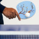 This product displays an image of a Nightingale bird, happily chirping away in a tree full of white blossoms.  The original image was painted by the artist W.B. with acrylic paint.