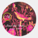 NIGHTINGALE WITH ROSES MONOGRAM Pink Yellow Black Classic Round Sticker