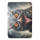 Pictured is a scary fanged vampire owl surrounded by smoke