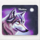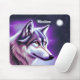 This beautiful mouse pad features an illustration of a mystical wolf face in profile with white and shades of purple and blue. The name on the mouse pad can be customised for the recipient.