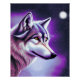 This is a beautiful poster for a wolf lover featuring an illustration of a mystical wolf face profile in white and shades of purple and blue.