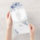 Blue and grey abstract flowers create a unisex design on this All-in-one Invitation. Part of the "Niko Collection".