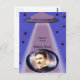 Inventor Nikola Tesla the gorgeous genius beaming up with spaceship hovering over him with stars in background.