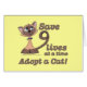 If a cat has nine lives, then adopting a cat saves nine lives at a time! Cute and clever drawing of a Siamese Cat with her tail in the shape of the number nine. Original design by Christie Black of Creations from the Heart.