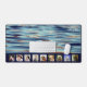 Personalise this desk mat with nine photos and monogram initials. Lake blue water is the background image with initials in the upper right hand corner, or delete to leave blank. A dark blue panel along the bottom holds nine, square photo templates. Your photo can be of any orientation as long as the subject is in the centre. Upload all your favourite memories to view while at the workspace. This item makes a wonderful gift idea for parents or grandparents.