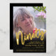 Eighty bold gold foil script text or your own foil colour. Personalise this 90th birthday party script photo birthday invitation with your own birthday party event details, and a photos of your birthday girl. Other years and matching items are available. © Original design by Sarah Trett for www.mylittleeden.com on Zazzle.
