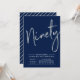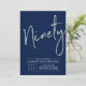 Celebrate your special day with this simple stylish 80th birthday party invitation. This design features a brush script "Ninety" with a clean layout on a navy blue background. You can customise the text and background colour. More designs and party supplies are available at my shop BaraBomDesign.