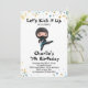 Create a memorable and fun birthday celebration for the cute ninja kid in your life. This easily customisable birthday party invitation is part of a matching set of birthday party accessories. You can host the best ninja themed birthday party for your little martial arts enthusiast. Just add your own details to customise, and don’t forget about party plates, cups, napkins, and all the essentials. This design features some cute little watercolor ninjas in blue and black.