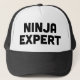 NINJA EXPERT fun slogan on trucker hat, black, bold typography, fun statement, inspired by tv character frank rossitano. perfect for all the ninja trainers out there!
