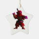 Ninja in camouflage red attacking with shuriken (throwing star) and staff.