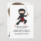 Invite friends to an action-packed adventure with this fun and customisable ninja-themed birthday invitation! Featuring a cute little ninja character ready for some serious birthday fun, this design is perfect for martial arts enthusiasts and energetic kids. With space to personalise the age and event details, plus a photo placeholder on the back for a special touch, this invitation will set the tone for a thrilling celebration.