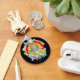 Meditating Buddha peacefully sits among a colourful array of stars, rainbows, flowers and Yin Yang symbols! An explosion of colourful and mindfulness! Eye catching Buddha gifts!