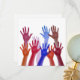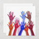 Vibrant, colourful hands reach upwards, overlapping in shades ranging from red to blue. The arrangement creates a dynamic sense of movement and unity.