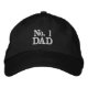 No. 1 Dad Black and White Hat makes a great gift idea for Father's Day, birthday or any occasion! AVAILABLE IN DIFFERENT COLORS AND STYLES. "No. 1 Dad" in white embroidered typography on front of stylish cap.