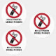 Our no activated mobile phones prohibition signs are designed to enhance safety and notify of dangers in various settings. Our ISO 7010 prohibition signs always include a red circle and a red diagonal on a white background with a black standardised pictogram. They are the "must not do" signs. Well-known signs include the "no-smoking" sign, "no photography," "not drinking water," and the "no open flame" sign. These prohibition signs are an essential tool for identifying and cautioning individuals, reducing risks, and promoting preventative measures. With its ISO 7010 compliance, this no activated mobile phones prohibition sign meets international standards for hazard communication. It features a bold and eye-catching design, making it easily noticeable in any environment where hazards are present. The prohibition label serves as a visual reminder of the danger. Its clear and concise message helps raise awareness among employees, customers, or visitors, ensuring they exercise caution and take necessary precautions. By prominently displaying this warning on containers, equipment, or areas containing these materials, you can effectively communicate the potential risks and encourage responsible handling and storage practices. This proactive approach significantly minimises the likelihood of accidents, protecting lives, property, and the environment. Trust our labels and signs to enhance safety protocols and maintain compliance with industry regulations. You can customise the text on our labels to indicate the precise nature of the hazard or to translate it into other languages.
