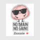 No Brain No Gain Funny Brain Pun features a cute brain looking cool in sunglasses declaring "No pain no gain". Perfect Puns gift for family and friends who love cute brain puns.