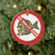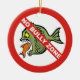Forbidden sign over angry fish bullying a little one. Custom text at back side.