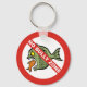 Forbidden sign over angry fish bullying a little one. Custom background colour and custom text at the back side.