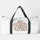 This crisp white duffle bag humorously declares the essential need for caffeine with its "NO COFFEE NO WORK" graphic. Scattered coffee beans and bold brown lettering emphasize the message. Ideal for daily use, gym sessions, or as a thoughtful gift for anyone whose productivity hinges on their daily brew. Edit colour of the bag caps and body in the Design tool to your favored colours.