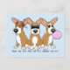 Hear no evil, see no evil, speak no evil. Cool Pembroke Welsh Corgi cartoon for dog lovers! The first canine has on a pair of headphones, listening to music. The second pooch has a pair of funky sunglasses. The third doggie is blowing a big pink bubble of bubble gum. Cute Pembroke Welsh Corgi Postcard!