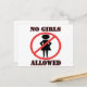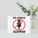 Save the Date for Deer Camp or Bachelor Party! Any All Boys All Men Events! No Girls Allowed Parties or Events! A Red Prohibition Sign with a Woman Inside. The no symbol (also known as a prohibition sign, no sign, circle symbol, or universal no) is a circle with a diagonal line through it (running from top left to bottom right), surrounding a iconic pictogram used to show something is not permitted. The no symbol is generally coloured red as it is here. No girls allowed, deer camp, bear camp, boys night out, guys night out, funny mens, metro man, bachelor party, bachelor parties, all boys slumber parties, new man cave build, all boys summer camp, all boys hunting camp,