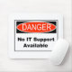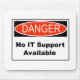 Heed this danger warning or proceed at your own risk. “No IT Support Available” is the message of this official sign. You’ll definitely want to share the message with those who do not take information technology or computer and network tech support seriously.