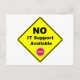 No IT Support Available Yellow Panic Warning Sign Postcard
