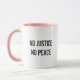 No Justice, No Peace coffee mug with pink trim from the CitiZone Street Gear collection. Ken-Ray designs