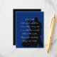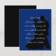 Ask for no kids at the wedding with this message card insert. Vertical, small wedding invitation enclosure cards with message to guests politely requesting no children attend the ceremony, and / or reception. A dancing couple in black silhouette is the background image over a very dark blue. Modern, script font is used in light grey for the message text. Sample wording is, "Dear Guests, Entire families are welcome at our wedding ceremony, but we are unable to accommodate children at the reception. Thank you for understanding" signed by the bride and groom.
