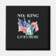 Patriotic “No King Lives in America” freedom flag design with bold messaging.