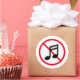 No loud music allowed sound prohibition sign Classic Round Sticker. Custom warning notice stickers for library, living quarters, residential apartment building, flat, shops, museums, business, corporate office, silent room, event, workplace, school room, store, hospital, spa, meditation centre, church, yard, park, zoo, garden and other places. Make your own music note logo caution signage with red prohibited circle and cross symbol. Handy for instructing musicians, customers, clients, visitors, guests, kids, tourists etc. Prevent high volume noise nuisance from music radio, boombox and other sources.