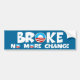 Anti Obama funny slogan economy themed bumper stickers.If you think Obama's socialist policies are more akin to communism and you're broke,these funny slogan anti Obama broke,no more change bumper stickers are the funny slogan right wing bumper stickers for you.