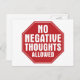 When you believe in positive thoughts the last thing you want to be around are negative thinking. Big red stop sign with the message No Negative Thoughts Allowed