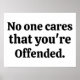 Funny sarcastic quote design: No One Cares That You're Offended. Humourous meme apparel for men and women who loves sarcasm, funny sayings and jokes. It makes a great present idea for dad, mum, brother, sister, friend, coworker, son, daughter… Perfect apparel to have if you are a sarcastic person or love telling jokes, wear this outfit to school, work, outdoors, beach, sport, running, meeting, wedding, camping... Or give it as present in birthday, father's day, mother's day, teacher's day, women's day....