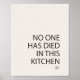 This witty kitchen poster features the phrase "No one has died in this kitchen yet" in a black font and accented with a canvas looking texture. Add some humour to your kitchen decor!
