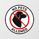 Let people know that pets are not allowed to a certain establishment or area. Destei's original portrait silhouette of a dog's head resembling a Golden Retriever and similar breeds with hanging ears. A red no symbol is placed over the dog silhouette. There are two personalizable text areas. The top reads: "No Pets" and the bottom one reads: "Allowed". The colour scheme is black, white and red.