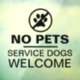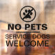Black and transparent no pets but service dogs welcome window cling or sign with a pet paw for any business, retail, store, coffee shop, cafe, restaurant, barber, salon, hotel, bakery, etc.