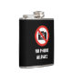 The flask itself is fine. It’s a cheap flask, obviously bought in bulk, however am prepared to overlook that. Given that it is a personalized item, I would have liked to have seen gift boxing instead of the generic packaging. Terrible printing, and/or quality. It’s a cheap, tacky vinyl. It is not cut straight and is also applied in a way that it is overhanging the bottom, causing the glue to catch on items and it will eventually roll and tear, damaging the wrap.