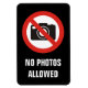 Camera icon with red prohibited circle and custom text reading "No Photos Allowed"