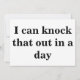 Standard white card with "No Problem!" on the front and "I can knock that out in a day" on the back. The text is in a large bold black font on both sides.