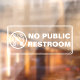 Window sign for business shops with text "no public restroom". Great for convenience stores and other locations.