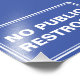 Window / wall / door sign for business shops with text "no public restroom". Great for convenience stores and other locations.