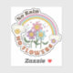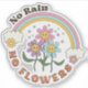 This sticker features a vibrant retro aesthetic inspired by 1970s retro art, showcasing groovy daisy flowers under a pastel rainbow flanked by smiling sun and cloud characters. The "No Rain No Flowers" typography wraps around the circular design in a bold, bubbly serif font, utilizing a warm palette of sunset orange and earthy brown that stands out against the dark background. It is a perfect accessory for students, office workers, and creative professionals who appreciate a "cottagecore" or "vibe-check" aesthetic. This versatile decal is ideal for personalizing laptops, water bottles, planners, or phone cases, offering a whimsical and positive reminder of resilience and growth through life's challenges.