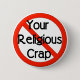 Keep the Bible thumpers off your porch and out of your immediate space with this familiar red circle slash and the words "Your Religious Crap." Great gift for Atheists and Freethinkers.