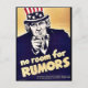 Great quality, restored No Room For Rumours world war 2 poster. WW2Poster store has this and hundreds of ww2 posters, mugs, ww2 stamps and more memorabilia. Relive and cherish the American history. This and many other products with No Room For Rumours in our collection.